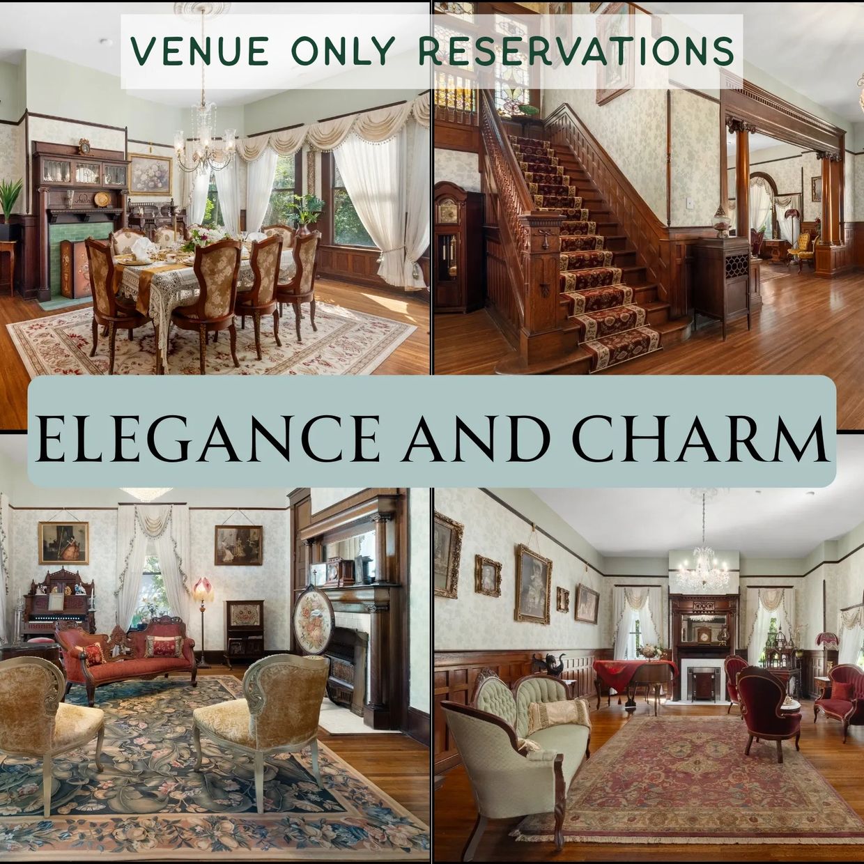 Ross Mansion can accommodate up to 30 guests inside the Mansion for these full service experiences.